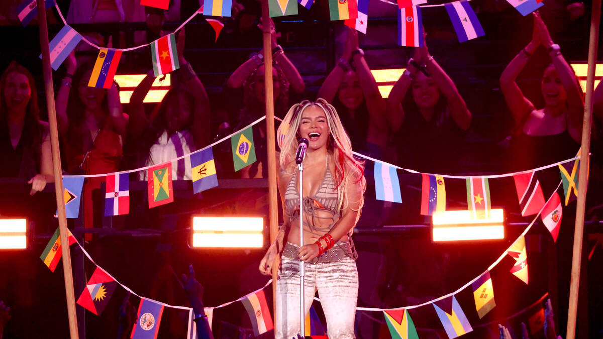 1 of 2 NEW YORK, NEW YORK - SEPTEMBER 08: Singer Bad Bunny attends the Men's Singles Final match between Taylor Fritz of the United States and Jannik Sinner of Italy on Day Fourteen of the 2024 US Open at USTA Billie Jean King National Tennis Center on September 08, 2024 in the Flushing neighborhood of the Queens borough of New York City. (Photo by Sarah Stier/Getty Images)Foto: Sarah Stier / Getty Images Sport / Getty Images